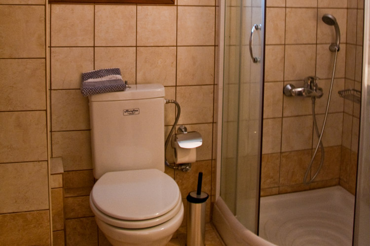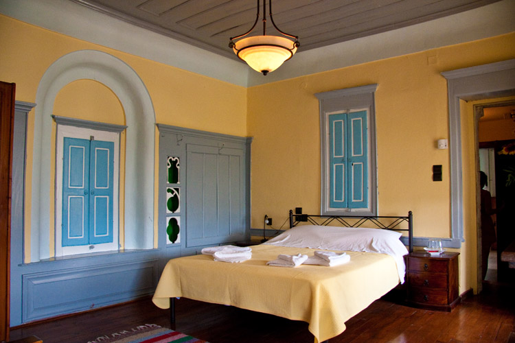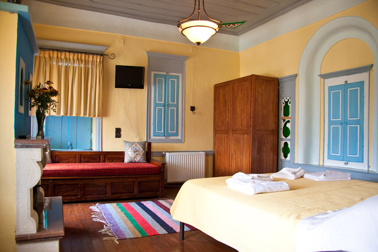 Διαθέτει 4 δίκλινα, 5 τρίκλινα με τζάκι και 1 τετράκλινη σουίτα με τζάκι, όλα με θέρμανση και μπάνιο. Υπάρχει καθιστικό με τζάκι και TV και χωριστή αίθουσα εστιατορίου.. |